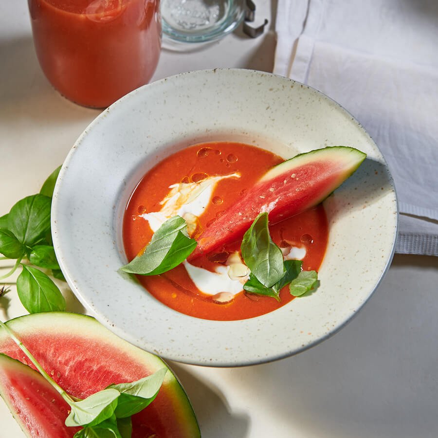 Wassermelonenstücke oder Spalten als Einlage für die Suppe